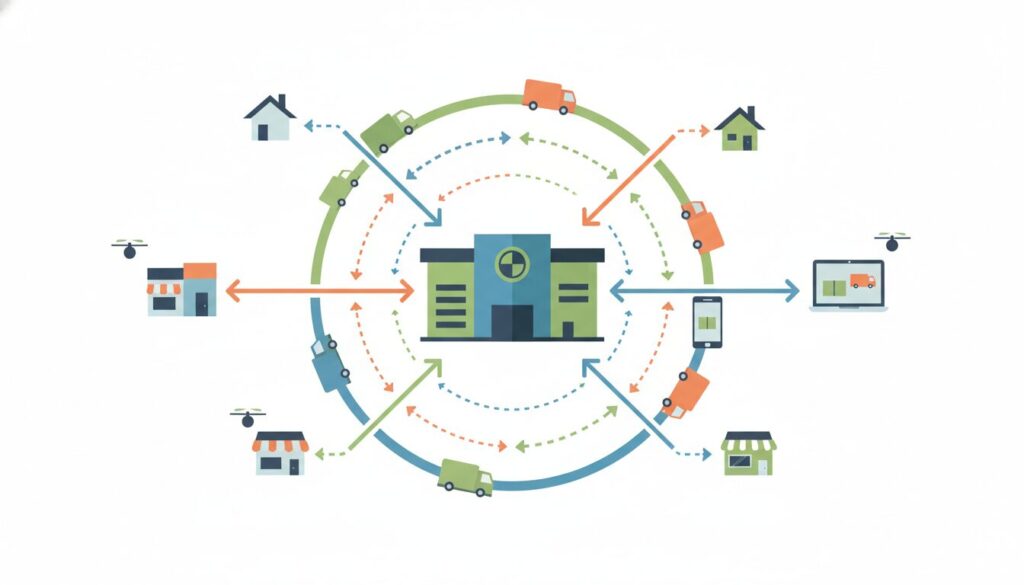 - 分散型物流網の構築:大型の物流センター(DC)のみに依存せず、全国に点在する実店舗を「マイクロフルフィルメントセンター」として活用することで、顧客までの物理的な距離を縮め、配送費用の削減とリードタイムの短縮を同時に達成できます。