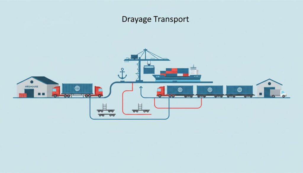 ドレージ(Drayage)輸送とは、主に港湾や鉄道のターミナルから目的地(倉庫や工場)まで、海上コンテナの中身をデバンニング(荷下ろし)することなく、そのまま陸上輸送する形態を指します。語源は、かつて馬で引く低い荷車「Dray(ドレイ)」を使って短距離輸送を行っていたことに由来します。