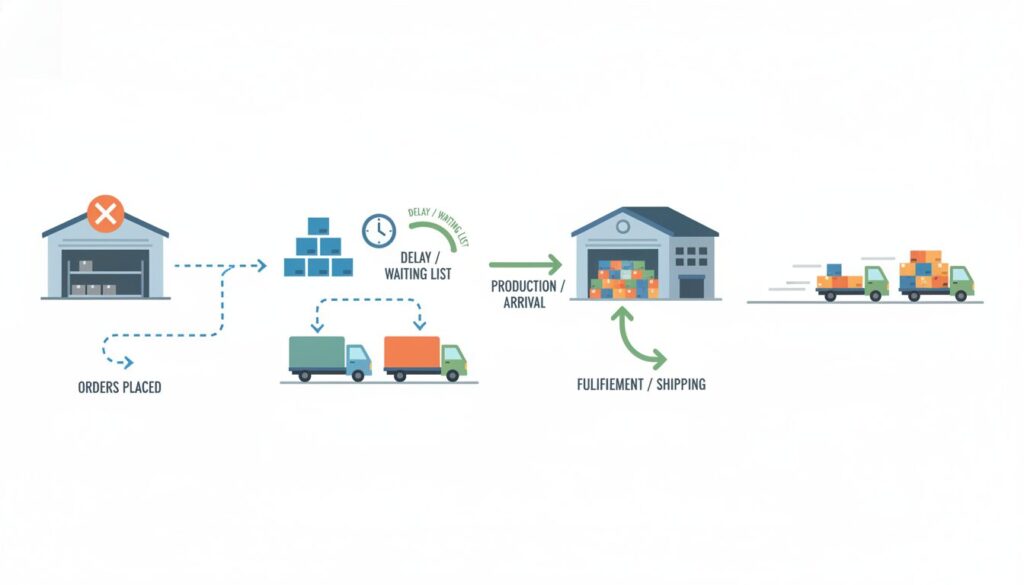 バックオーダーと「予約販売」は、どちらも「現在庫がない状態で受注を確定させる」という点では共通していますが、その目的と発生プロセスが根本的に異なります。予約販売は、新商品の発売前や季節商材において、事前に需要予測の精度を高めるために「意図的かつ計画的」に行う先行受注です。対してバックオーダーは、想定以上の売れ行きにより既存在庫がショートした結果生じる「事後的な継続受注」という意味合いが強くなります。