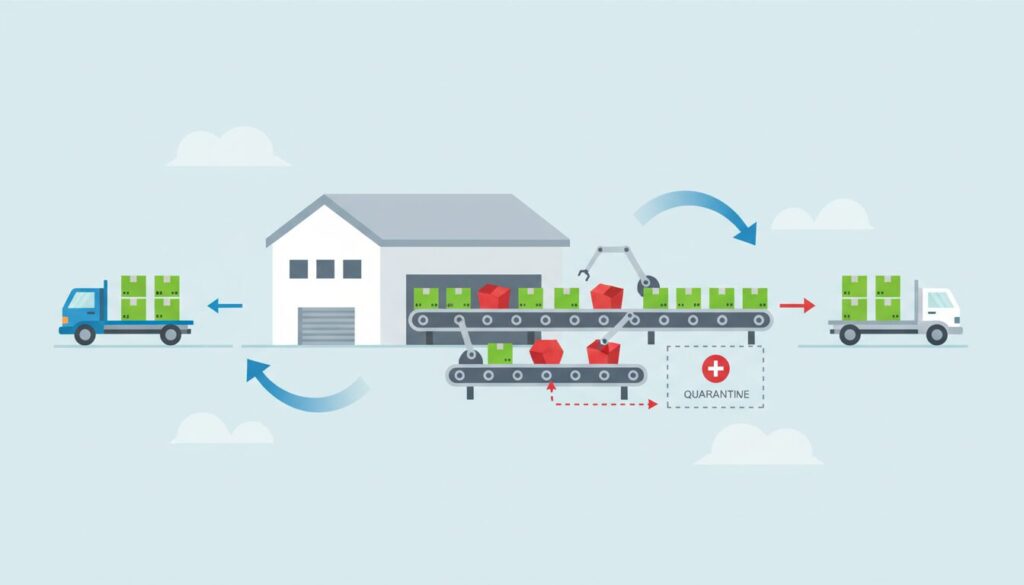 実務においては、WMS上で良品と不良品のステータスを即時反映させることが基本ですが、万が一のシステム障害時には、赤と青の物理テープでパレットを完全に隔離し、紙のタリーシートでアナログ管理するバックアップ運用手順を、倉庫側と事前に取り決めておくことが誤出荷を防ぐ最後の砦となります。