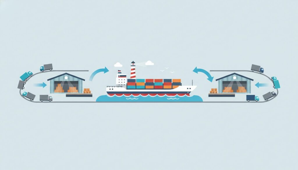 | 3. トライアルと品質管理 | テスト輸送時の荷崩れや、海上特有の波のピッチング(縦揺れ)による製品ダメージの発生。 | ラッシング(固縛)手法の抜本的見直し。海上輸送専用の緩衝材やパレットの再設計を行い、「製品破損率」を厳格にモニタリングする。 |
