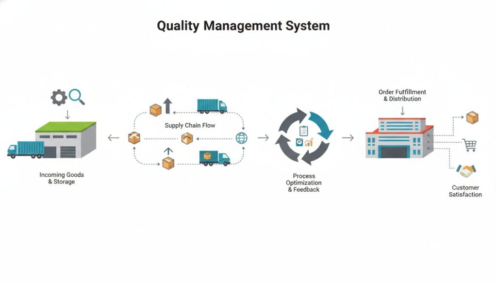 - プロセスアプローチ:入荷・保管・流通加工・出荷という各工程を「点」ではなく「線」で捉え、前工程の遅れやミスが後工程の品質にどう影響するかを可視化・管理すること。