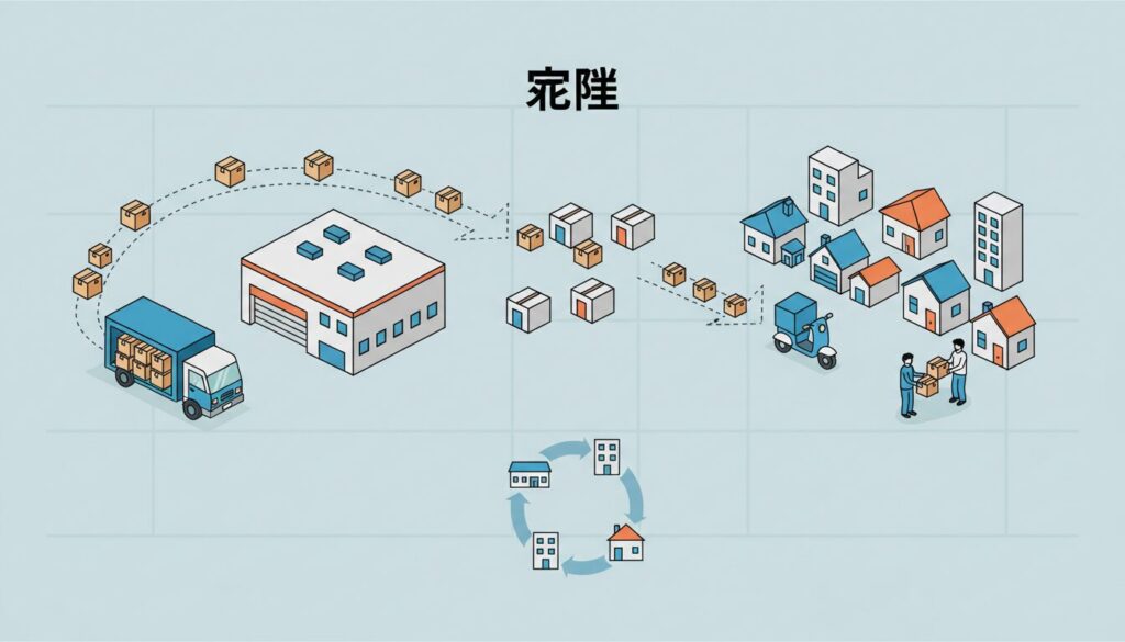 - 19:00〜 夜間配達・再配達対応:夜間は帰宅する単身世帯が多いため、配達密度が上がります。不在票の連絡を受けた当日中の再配達依頼を、既存のルートにどう組み込むかが腕の見せ所です。