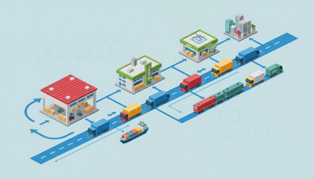 前セクションで解説した通り、大量の荷物を長距離一括輸送する幹線輸送は物流網の「大動脈」です。しかし、サプライチェーン最適化の観点から見れば、幹線輸送単体で業務が完結することはほぼありません。エンドユーザーや最終納品先(店舗、工場、個人宅など)へ確実に荷物を届けるためには、毛細血管の役割を果たす「地場配送(二次輸送)」との緻密な連携が不可欠となります。本セクションでは、物流現場の最前線における両者の明確な使い分け基準と、荷崩れや遅延を防ぎながら行われるリレー輸送の実態を深掘りします。