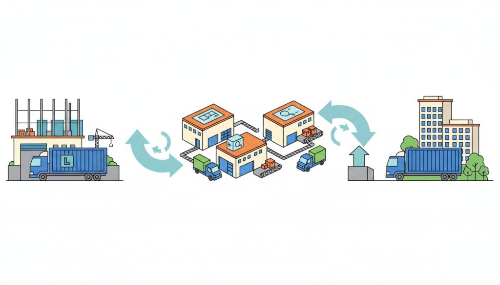 物流倉庫の建築プロジェクトは、「倉庫 用途地域 制限」の適合確認と行政との事前協議から始まり、以下のフローで進行します。
