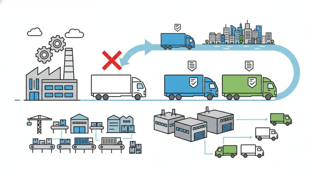 このように、物流現場におけるコンプライアンス管理は「運送会社への丸投げ」から「荷主主導の厳格管理」へとシフトします。特に自社便と外注便を混在させて配車を組んでいる企業や、WMS(倉庫管理システム)のトラブル等による緊急出荷時に、なりふり構わず車両を手配する癖がついている現場は要注意です。「急いでいるから」という理由で無許可の業者を利用することは一切許されません。荷主責任 物流の重圧に耐えうる、透明性の高い配車・委託フローの構築が今まさに急務となっています。