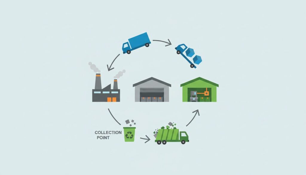 - キーワードの概要:資材リサイクルとは、事業活動で出た廃棄物を回収し、新たな資源として再利用することです。単に捨てるのではなく、環境を守るための「静脈物流(リバースロジスティクス)」という仕組みを使って資源を循環させます。