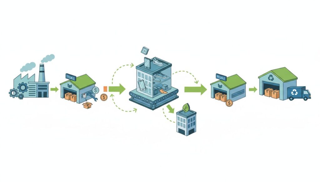 逆物流の最適化は、サーキュラーエコノミーへの移行という世界的な潮流に直結します。返品されたB品や使用済みの製品を単に廃棄するのではなく、修理(リペア)、再整備(リファビッシュ)、あるいは素材としての再資源化(リサイクル)ルートに乗せることで、環境負荷を大幅に低減できます。