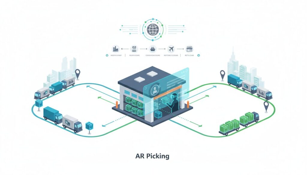 例えば、GTP(Goods to Person:棚搬送型ロボット)システムでは、ロボットが作業者の目の前まで棚を運んできます。この定点作業においては、ARピッキングの「歩行ナビゲーション」の価値は薄れます。しかし、AMRがピッキングカートを自動追従・自動搬送し、作業者自身は通路を歩き回る「ゾーンピッキング」の環境下では、ARピッキングの直感的な指示とAMRの搬送能力が掛け合わさり、ピッカーの歩行ロスと荷役ロスを同時にゼロに近づける究極のシナジーを生み出します。