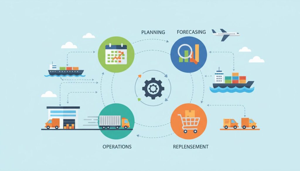- 需要と供給管理 (Demand & Supply Management): 小売のPOSデータや特売計画をベースに「どれくらい売れるか(販売予測)」と「どれくらい納品すべきか(オーダー予測)」を算出・統合します。