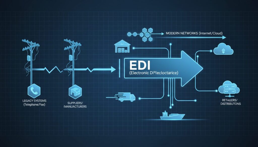 ここには、「自分たちの目で紙を見ないと安心できない」という現場特有の心理的ハードル(組織的課題)が潜んでいます。この非効率から脱却し、真のサプライチェーン可視化を実現するための特効薬が、EDIの近代化による情報のシームレス化です。インターネットEDIを通じて、荷主やメーカーから正確な事前出荷情報 (ASN) を前もって受信できていれば、トラックが到着した瞬間にハンディターミナルでのスキャン検品を即座に開始できます。