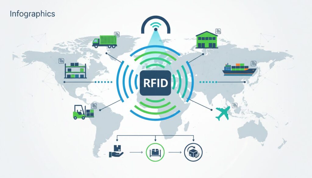 ここでの技術的な主流は、安価なUHF帯のパッシブタグです。入荷ドックにゲート型リーダーを設置し、フォークリフトが通過するだけで数十〜数百のアイテムを瞬時に一括読み取りし、WMSへと入庫実績を自動連携させます。