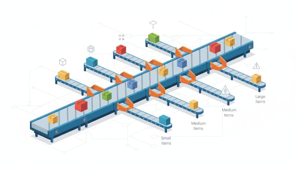 - ピーク波動と例外処理の分析: 平均物量だけでなく、「1年のうち最も物量が多い日のピーク時間帯」のデータを分析します。また、実務で最も滞留の原因となる「例外(長尺物、変形段ボール、テープの剥がれ、バーコードのない商品)」が全物量の何パーセントを占めるかを洗い出し、それらをソーターに流すか、あえて手作業のバイパスルートに残すかを決断します。